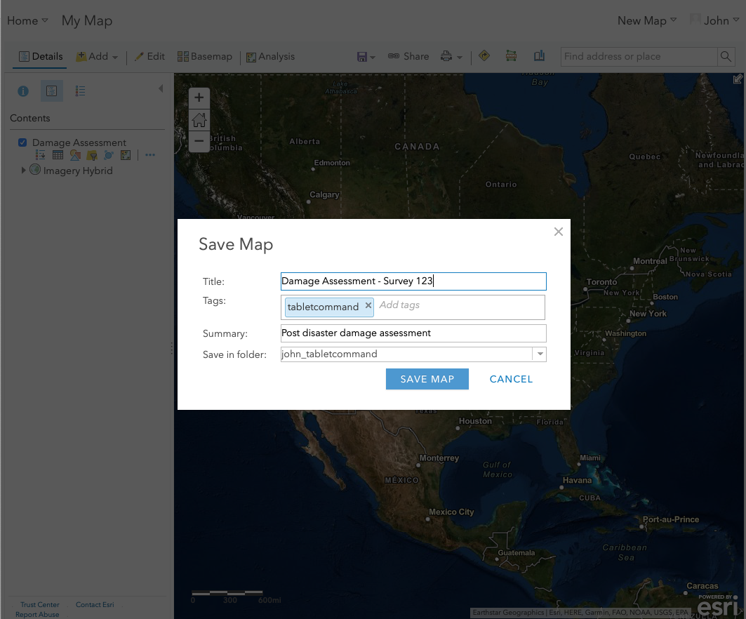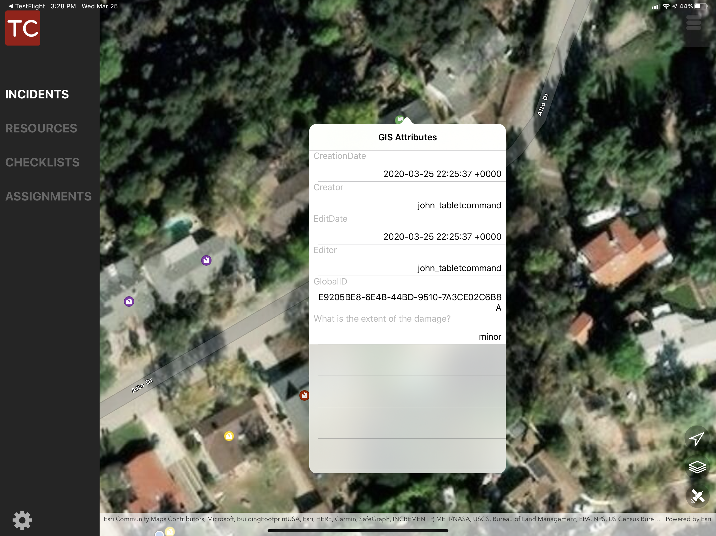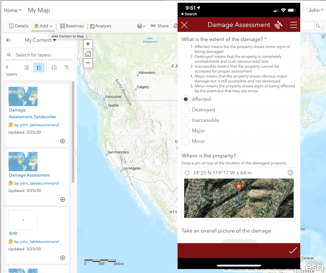 Agencies can combine the power of Tablet Command, ESRI’s Survey 123 and ArcGIS Online to quickly collect and display geospatial data. These powerful collaborative tools can be used for a wide variety of situations including damage assessments, marking hazardous occupancies, and identifying safe zones and lookouts during wildland pre-incident planning.